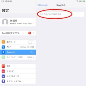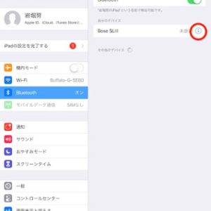 このデバイスの登録を解除をタップ→ブルートゥーススピーカーの電源を入れる→Bose SLⅢが検出される