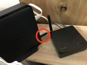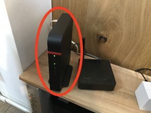 奥の部屋のホワイトボード下の「WiFiルーター」の電源を抜いてもう一度差す。