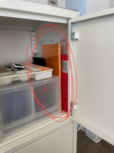 ▼手前の部屋の白い備品ロッカーの中にあります。(オレンジ色のファイル)