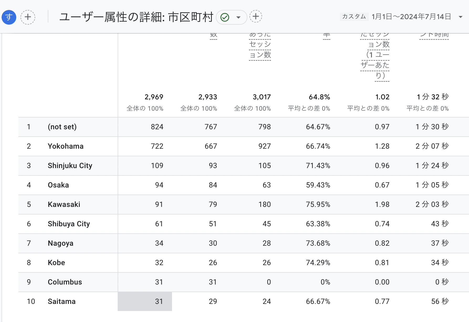 アクセスしてる土地です。通える距離にいるのは横浜の667人の新規ユーザー。さらに、広い横浜の中でも都筑区付近って考えると、、、192人は、なかなか妥当な数字なのかなと。