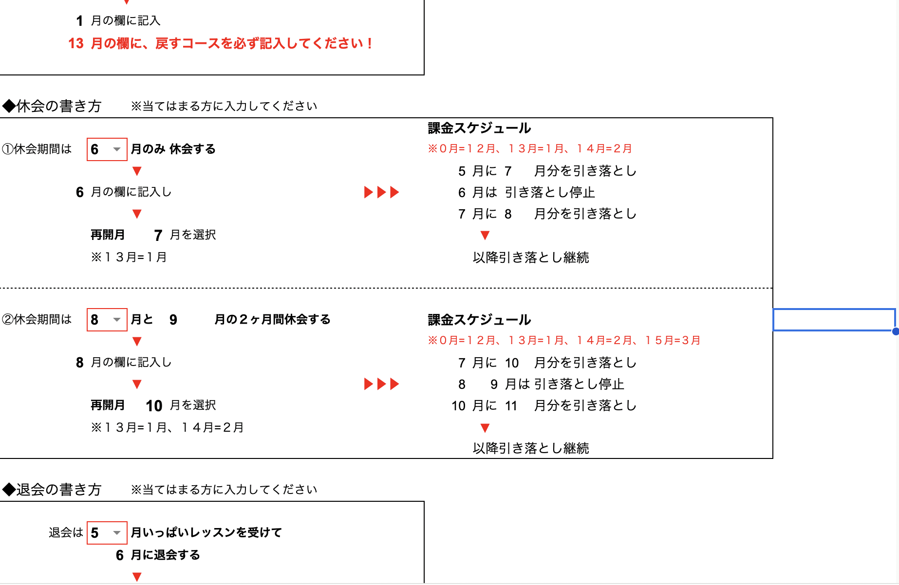 例:4月からコース変更 or 休会 → 3月の欄に記入