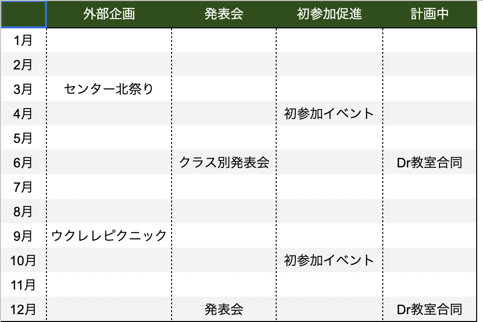 今年は、主に上記の表のようにイベントを進めていきたいと考えています。