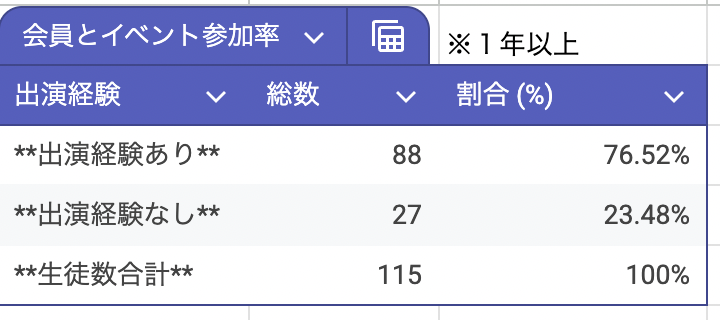 これまでの在籍データとイベント参加履歴をもとに集計したところ、